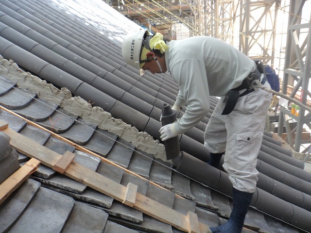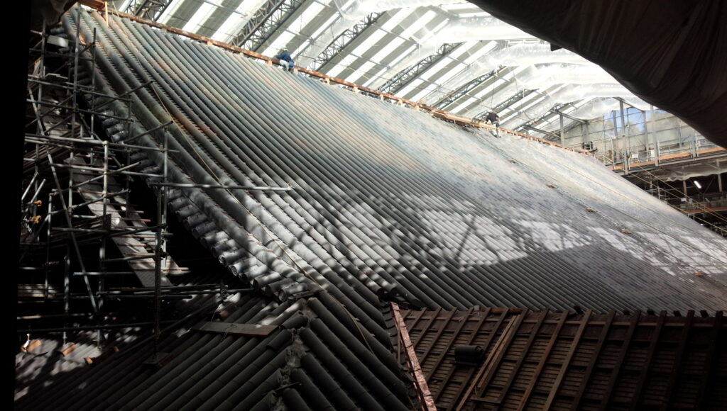 社寺や文化財に使われる瓦は、現代の瓦とは製造方法が異なるため、ねじれや大きさが不揃いです。私たちは国宝文化財の建造物に使われる部材一つ一つまでを文化財と考えています。その為、再利用した瓦の個性を生かし100年後200年後も再利用できるように考えて施工します。