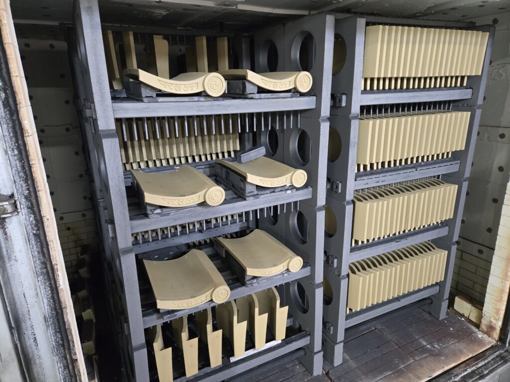 社寺文化財に使われる瓦は、時代や年代により、大きさ形が異なります。橋本瓦葺工業では自社工場で、様々な年代の特殊な瓦や他社では対応できない瓦の製作に対応しています。また、長年の経験や研修で培った技術で数百年後も保つ瓦を目指し丁寧に製作いたします。