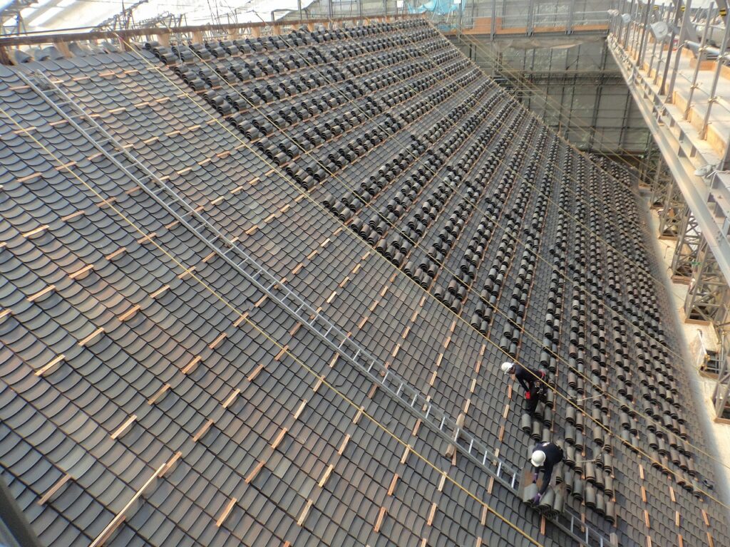 文化財建築や寺社の瓦葺きは日本建築の美しさを象徴するための大切な役割を担っています。瓦は焼き物であるため、一枚一枚の大きさやひねりも違います。